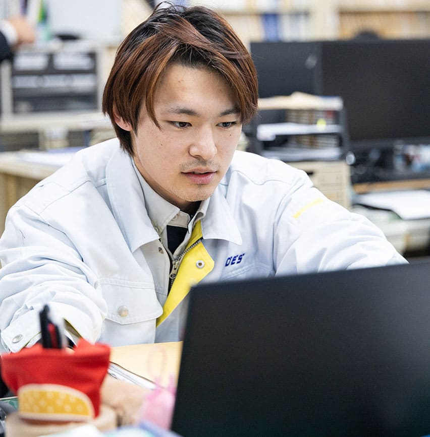 点検作業だけの仕事だと思っていましたが、報告書や見積、図面作成など、デスクワークも重要な仕事だと知りました。また、家庭の事情にも配慮して休みを取れる点は大きな魅力です。